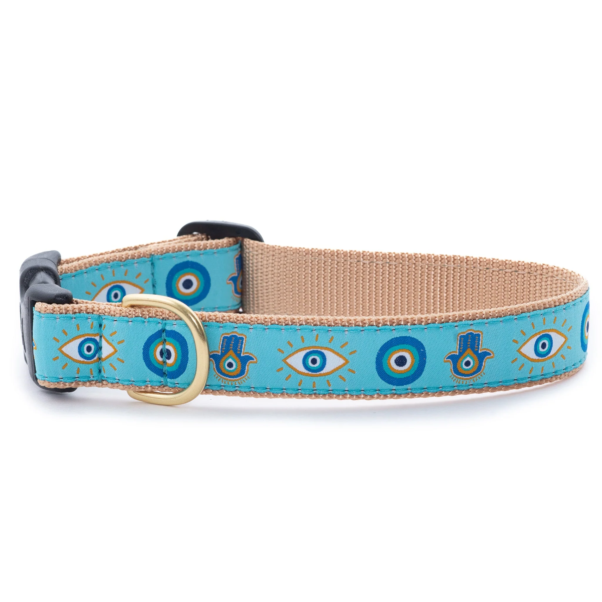The Up Country Evil Eye Dog Collar is a stylish and unique accessory for your furry friend. Made with high-quality materials and attention to detail, this collar features a striking evil eye design that is sure to turn heads during your daily walks.