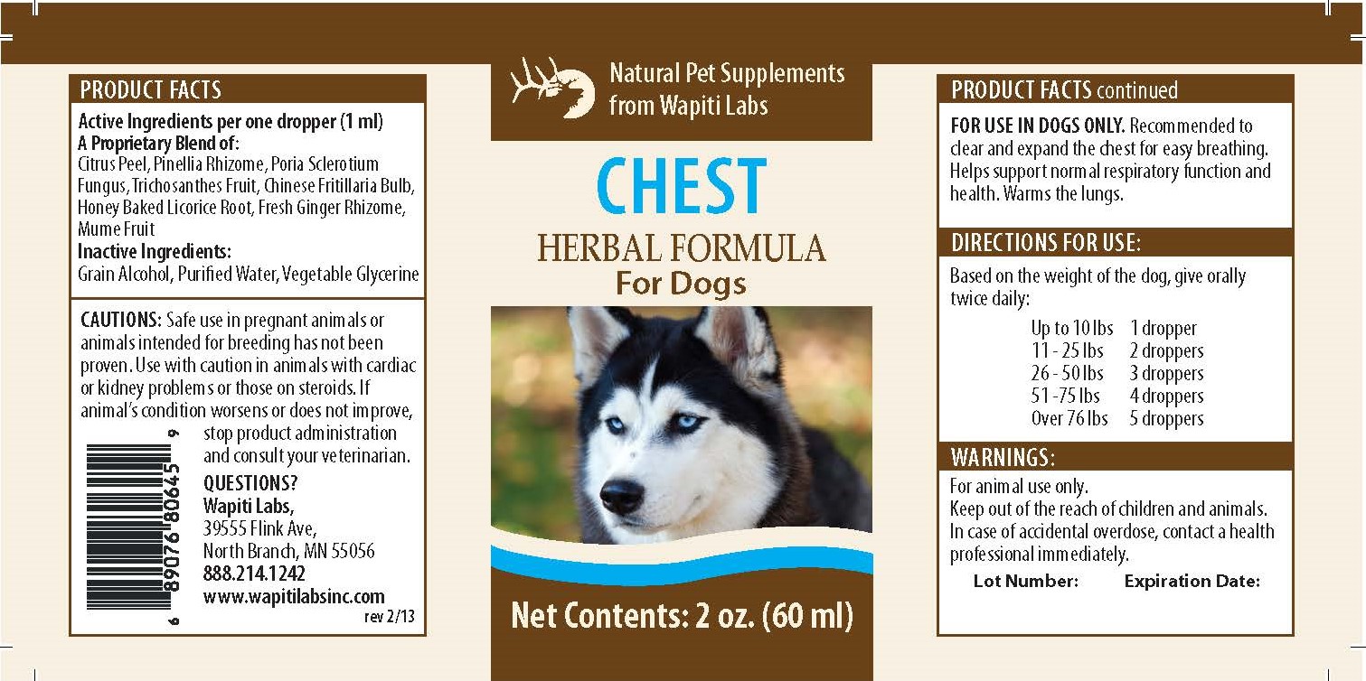 Wapiti Labs Chest Herbal Supplement Formula For Dogs: Natural Support for Canine Respiratory Health is formulated with natural herbal ingredients to help support normal respiratory function and health.