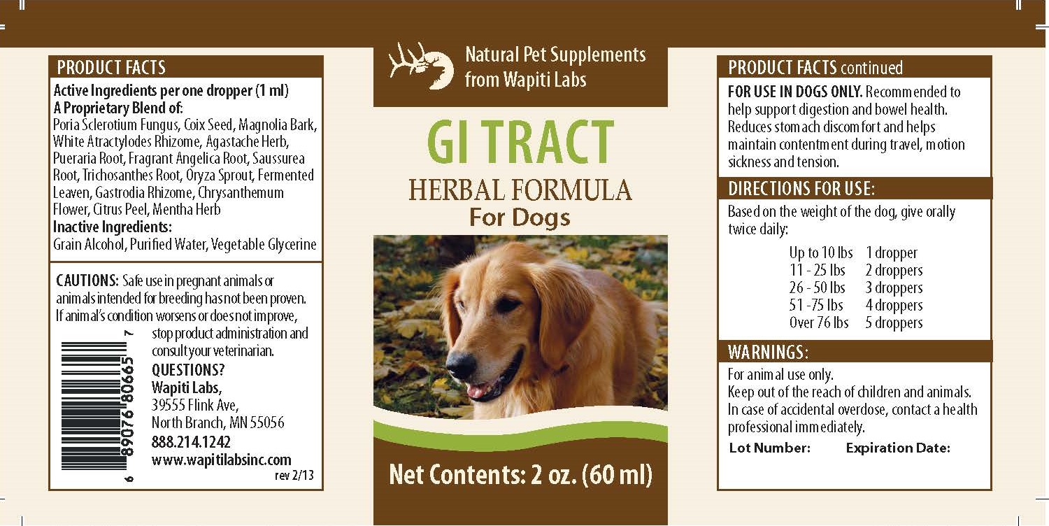 Soothe your dog’s upset stomach with Wapiti Labs GI Tract Herbal Supplement Formula For Dogs supplement based on time-tested, traditional Eastern Holistic formulas. Our concentrated liquid formula harmonizes the stomach.