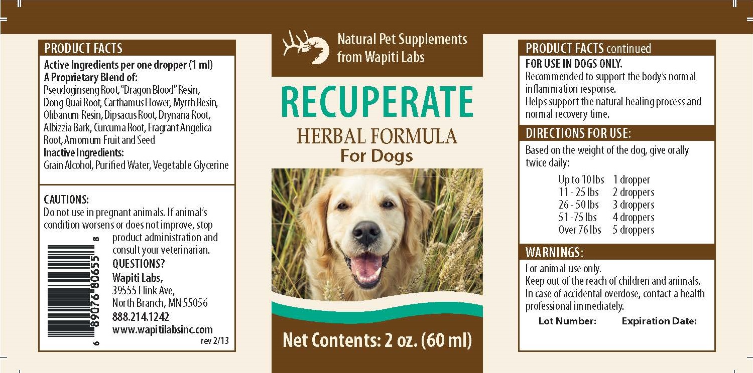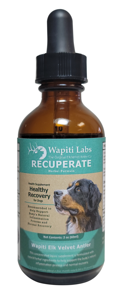 Leg and foot injuries are among the most common trauma in dogs. Our Wapiti Labs Recuperate Herbal Supplement Formula for Dogs supplement is a traditional Eastern Holistic Formula that supports the natural healing process, recommended to support the body’s normal inflammatory response and normal recovery time.